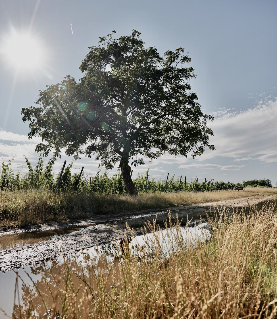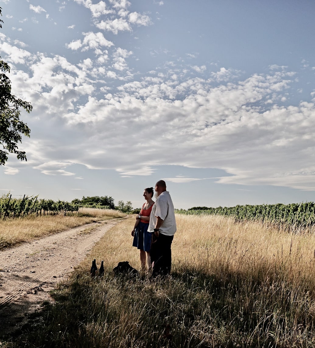 Unsere Rebstöcke wurzeln in den Böden von Weiden am See nahe des Neusiedler Sees; einer Region, die geprägt ist von den Einflüssen der Alpen und der Pannonischen Tiefebene. Wir mögen die kalkhaltigen Hänge und noch mehr die steinigen, kargen Lagen, die für feine, fragile, mineralische Weine sorgen. Unsere Weingärten unterstützen wir nach biodynamischen Demeter-Richtlinien durch eine schonende Bodenpflege, den Einsatz natürlicher Präparate, eine artenreiche Begrünung und gezielte Laubarbeit. Wir verzichten auf künstliche Bewässerung sowie chemische Pestizide und Düngemittel. In unsere Naturweine kommt nichts, außer der puren Traube. Wir arbeiten mit Spontangärung durch natürliche Hefen, Maischestandzeiten, biologischem Säureabbau, oftmals mit Maceration Semi Carbonique, ohne Pumpen und ohne Filtration. Wenn notwendig, unterstützen wir unsere Weine mit einem Minimum an SO₂. Mehr haben wir der Natur nicht hinzuzufügen.
